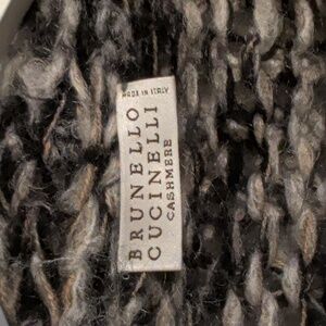 stunning Brunello Cucinelli mohair, cashmere, wool blend sweater. it has a mix of beautiful black, brown, and grey colours in it with one button closure at the front. it also has 3/4 sleeves. it's in excellent pre-owned condition with no holes or stains. because of the nature of mohair it does have that fuzzy texture. it's always been stored folded, only hung for these pictures. it's a loose knit and has some stretch to it. it's marked a size small but could easily fit medium. approximate measurements lying flat: armpit to armpit - 24.5 inches length (center back to hem) - 23.5 *all items come from a smoke-free & pet-friendly home **open to reasonable offers and any questions
