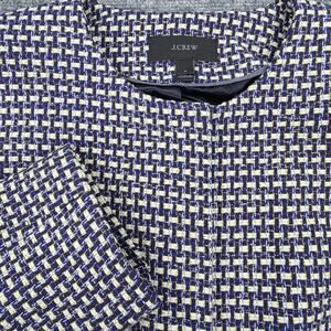 J Crew Blazer Women 6 Blue Silk Blend Tweed Hook Eye Pockets Lined Career Jacket