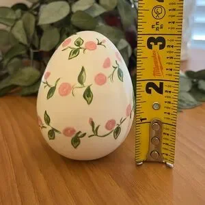 Ceramic Egg with Pink and Green Floral Design Signed Cheri