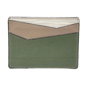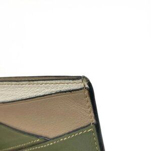 LOEWE Puzzle Plain Cardholder Khaki Brown White Leather Card Case