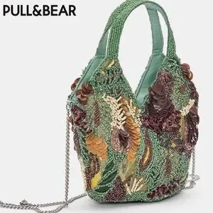 Pull&Bear Green and Brown Beaded Shoulder Bag