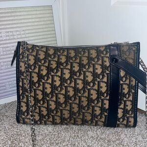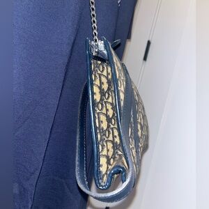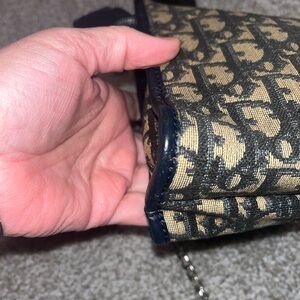 This is a vintage Christian Dior clutch/pouch signature navy Oblique monogram