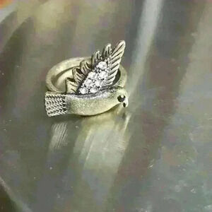 Brass tone bird with clear rhinestones ring size 10
