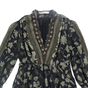 eShakti Dress Wayward Fancies Chiffon Midi Longsleeve Floral Print Batik Green