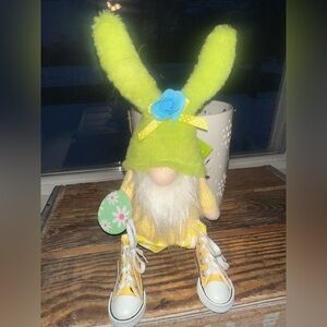 Green & Yellow Bunny Gnome with Yellow Sneakers Shelf Sitter ~ New