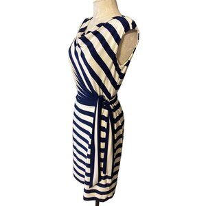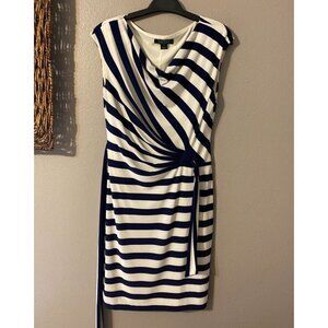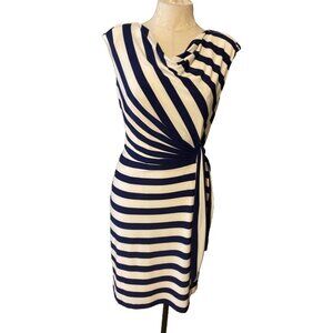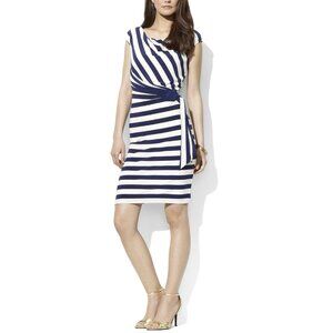 Ralph Lauren Dress Navy Blue Ivory 8 Stripe Stretch Washable Career Church