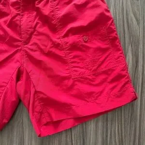The AFTCO Original Fishing Men's Shorts in size 34 are a versatile choice for outdoor activities such as fishing, camping, and hiking. Made of lightweight nylon fabric with a solid red color, these shorts feature an embroidered AFTCO logo and cargo pockets for added functionality. A regular fit make them comfortable for all-day wear, while the easy-care machine washable material ensures low maintenance. With a button closure and elastic waist, these shorts are perfect for casual travel and summer adventures.