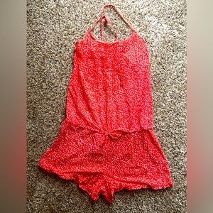Romper Swim Cover Up red porka dot tie ruffle front XS