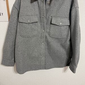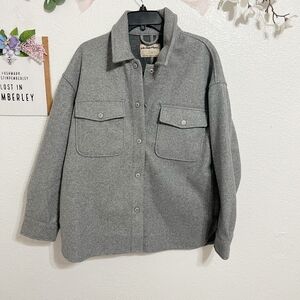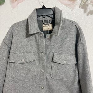 simple yet so staple layer, this shirt-inspired jacket from We The Free is featured in a faux wool for a cozy addition to any outfit.Fit Relaxed, oversized Faux wool fabrication, pointed collar, flap chest pockets, snap-front closure, drop-shoulder sleeves, button cuffs, round hem