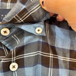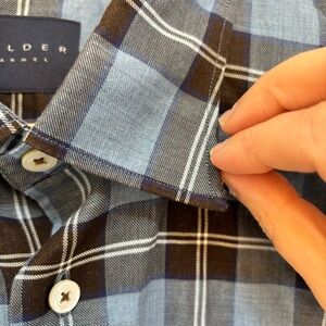 Hello, love! Carmel Calder 100% cotton limited edition collared button-down men’s shirt. The label says it is one out of 250. All of your questions and offers are welcomed! Shirt is in excellent used condition. Hidden collar buttons as shown in pics. The cotton feels like butter.