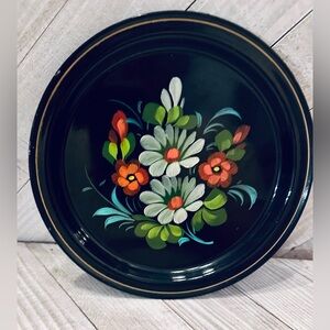 Vintage Russian hand painted floral metal tole dish