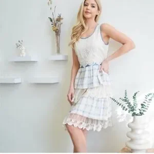 RYU Plaid pastel gingham print embroidered lace ruffle skirt cottagecore Cocktail Easter Dress spring summer