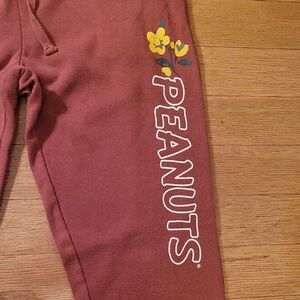 Charming Peanuts joggers with a yellow floral accent. Cozy and playful for ladies day.