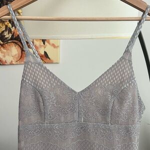 Gorgeous PS THE LABEL Grey / Silver coloured lace Overlaid over Nude Midi Dress