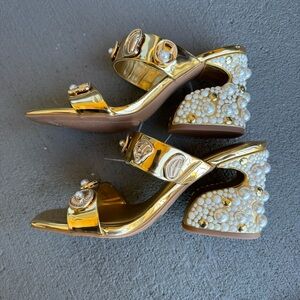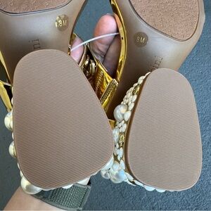 Gianni Bini Penei Metallic Pearl Ornament Detail Slide Sandals 8M Gold (NWOB)