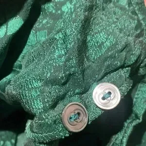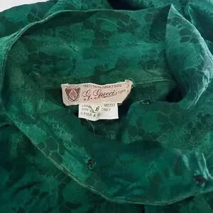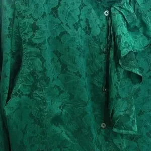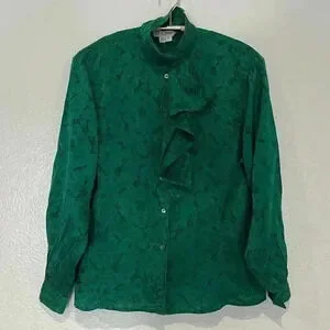 Gucci Emerald Green Silk Jacquard Blouse Size Medium GG Logo Print Ruffle Blouse
