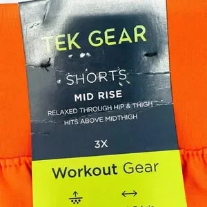 NWT TEK GEAR Women Mid Rise Drawstring Pockets Workout Orange Shorts Plus Sz 3X