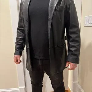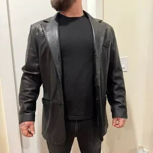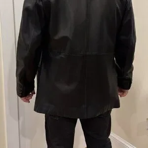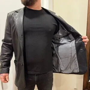 Trek 100% leather with satin lining. I wore this with a shirt and tie when I worked in finance. People were terrified of me. It's a high-quality item with zero flaws. The leather is soft and moves easily.