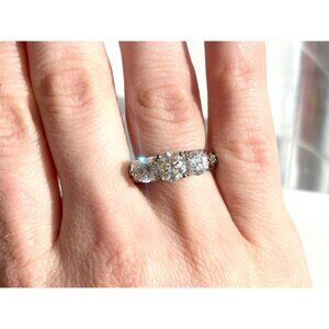 Triple Cubic Zirconia Gemstone Sterling Silver 925 Vintage Ring - sz 7