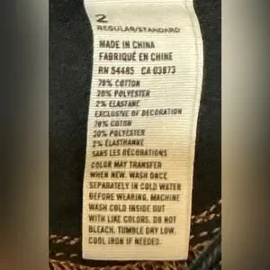 78% Cotton, 20% Polyester & 2%. Elastane