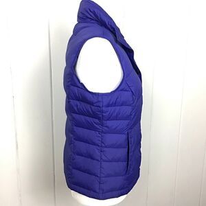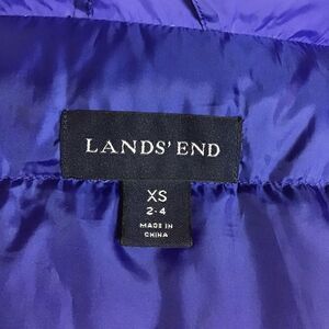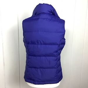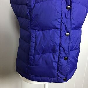 Lands’ End Down dark periwinkle (blue/purple) puffer vest with snap front closure and a pocket on each side. Size - XSmall (2-4). Shell: 100% nylon. Lining: 100% polyester. Insulation: 90% down, 20% feathers. This vest is in excellent shape and perfect for the upcoming winter months!