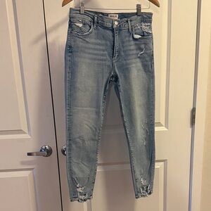 EUC AGOLDE Sophie High Rise Skinny Crop Distressed Jeans Light Blue Wash Size 28