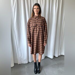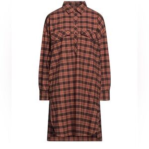 Closed Cotton Shirt Dress 100% Cotton Flannel Plaid Size Small Brown Black EUC
