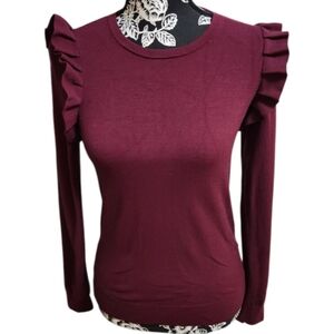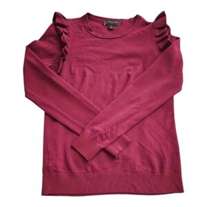 Ann Taylor Maroon Ruffle Shoulder Long Sleeve Top - Size Small Petite