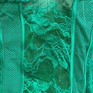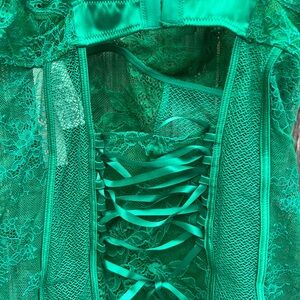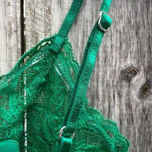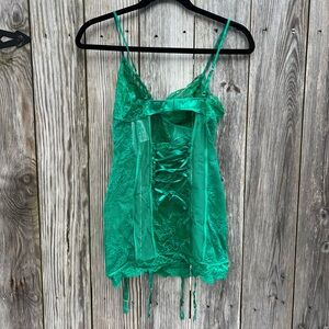 VICTORIAS SECRET Green Triangle Lace Tie Garter Slip Lingerie Women’s Small NWT