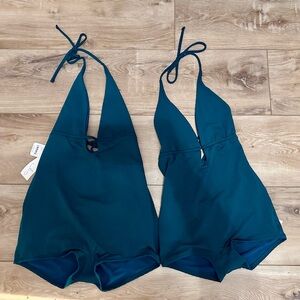 • Plunge neck with band under bust for support