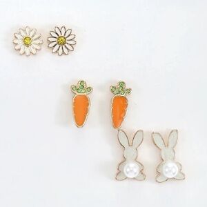 ๐ฐWay to Celebrate Easter Stud Earrings Set- Bunny, Carrot, Daisy Goldtone Set