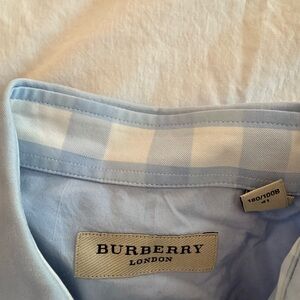 Classic Burberry dress shirt in light blue. Perfect for formal and casual settings. Timeless style with a modern fit.