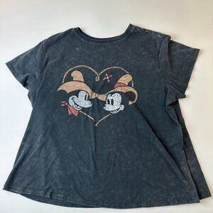 Disney Mickey Mouse Shirt Womens 3X Black Cowboy Hat Minnie Western Graphic Tee