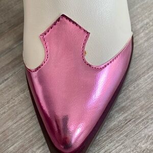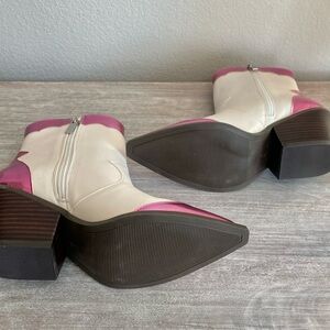 Corky’s Hot Metallic Pink & White Side Zip Ankle Pointed Toe Boots Shoes 8