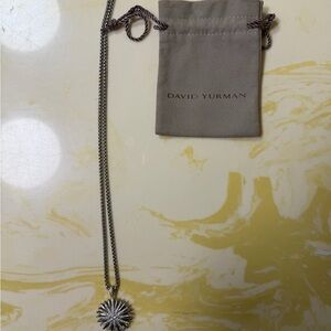 David Yurman Silver Sunburst Pendant Necklace with diamonds