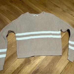 PacSun Tan Sweater with White Stripes size Small