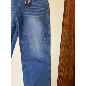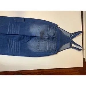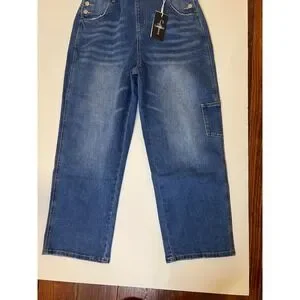 Flamingals Women Medium Wash Denim Wide Leg barrelCarpenter Overalls Blue NWT