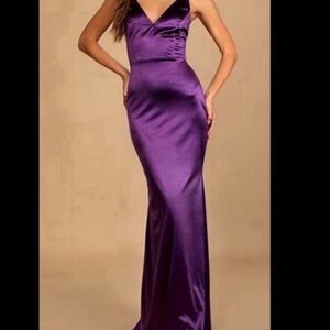 Lulus Melora Dark Purple Satin Sleeveless Maxi Dress. Size Small. Worn 1x.