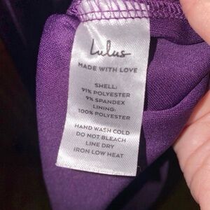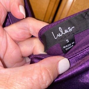Lulus Melora Dark Purple Satin Sleeveless Maxi Dress. Size Small. Worn 1x. Medium-weight stretch knit satin fabric. Lined. Due to nature of material some wrinkles may show especially after shipping. Back zipper. I’m 5’5” and needed to wear a high heel and it still puddled a bit on the floor, see photo. Smoke and pet free. Freshly hand washed and air dried.