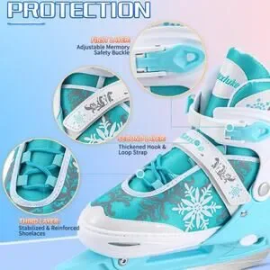 Triple Protection System: Our kids ice skate is made up of secure lacing, 45°velcro Strap and high-strength buckle, which are sure to provide safe ankle support and protecting your child's safety during sliding.