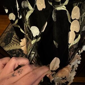 Elite Cutie Black Mesh 3D Floral Embroidered Midi Dress in size XXL. Last pic shows that under the zipper there is a gap in the mesh and underlayment. Could be sewed or left alone, it doesn’t seem to matter when the dress is zipped