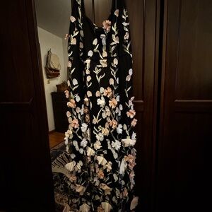 NWT Elite Cutie Black Mesh 3D Floral Embroidered Midi Dress