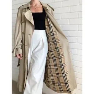 Burberry Beige Classic Trench Coat Jacket Full Novacheck Lining 100% Cotton