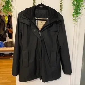 Burberry Calandra Black Coat Jacket interior Novacheck Lining Winter sz S