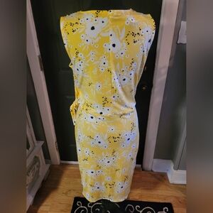 Chic yellow mini dress with floral pattern. Sleeveless design. Perfect for sunny days.