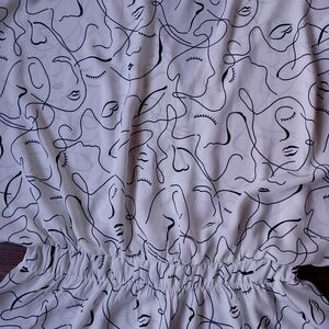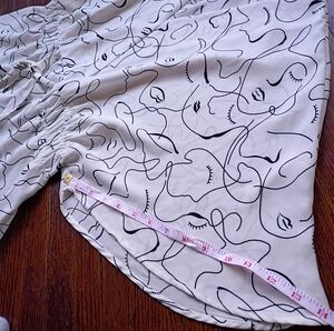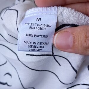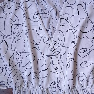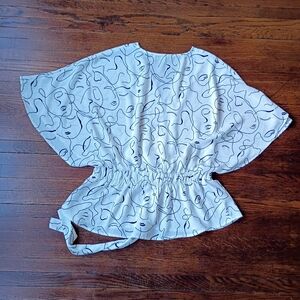 The Sweet Rain Abstract Art Print Tie Waist Tunic Blouse is a stylish and versatile piece perfect for casual occasions. Made from 100% polyester with a woven fabric type, this blouse features a flattering V-neckline and flutter sleeves for a feminine touch. The tie closure and elastic waist add a trendy twist to the design, while the lightweight material makes it ideal for the summer and spring seasons. The black and white color scheme and abstract pattern give it a unique and artistic flair, making it a standout addition to any woman's wardrobe. In excellent condition and size medium. Please look at the pictures for more details. Offers are welcome and bundle to save!