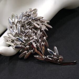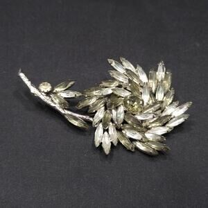 Alice Caviness Gray Navette Rhinestone Flower Brooch Rhodium 1960s