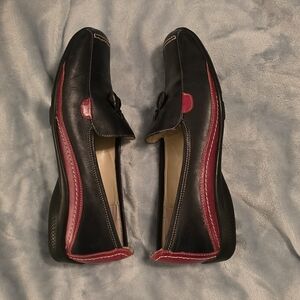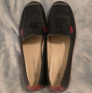 Anne Klein Women's Navy And Red Leather Loafers, Size 8