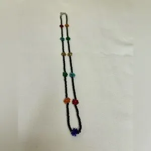 Beaded Flower Choker Necklace, Multicolor Necklace, Minimalist Choker