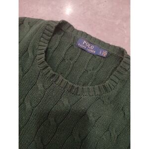 Polo Ralph Lauren Mens Cable Knit Sweater Cotton Size Large Green Old Money